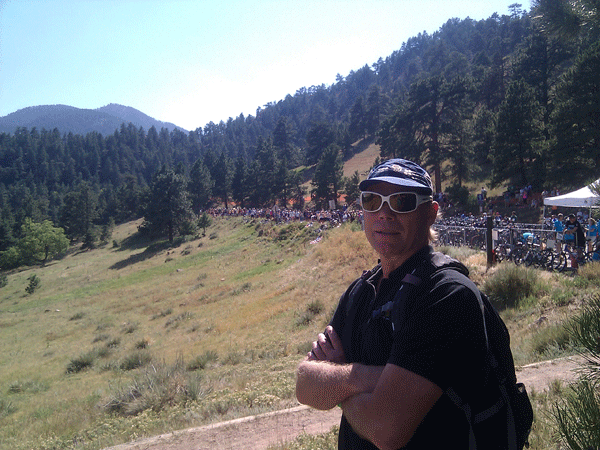 I always love an adventure with my two boys. The arrival of the US Pro Challenge in Boulder on August 25th was to present one of those opportunities. I had never watched a Pro cycling event live, in my life. I had watched the Tour de France on TV, but live was always different. They were saying over 100,000 people would come to watch the Tour come through Boulder. There would be two loops through downtown and then the finish up legendary Flagstaff Mountain, a 1200 ft gain over 3.5 miles. It was expected that there would be 30,000 people “on the mountain” to watch the finish. The road was to be closed to cars from 6 AM on race day, so you had to ride or hike to watch the race on Flagstaff Mountain.